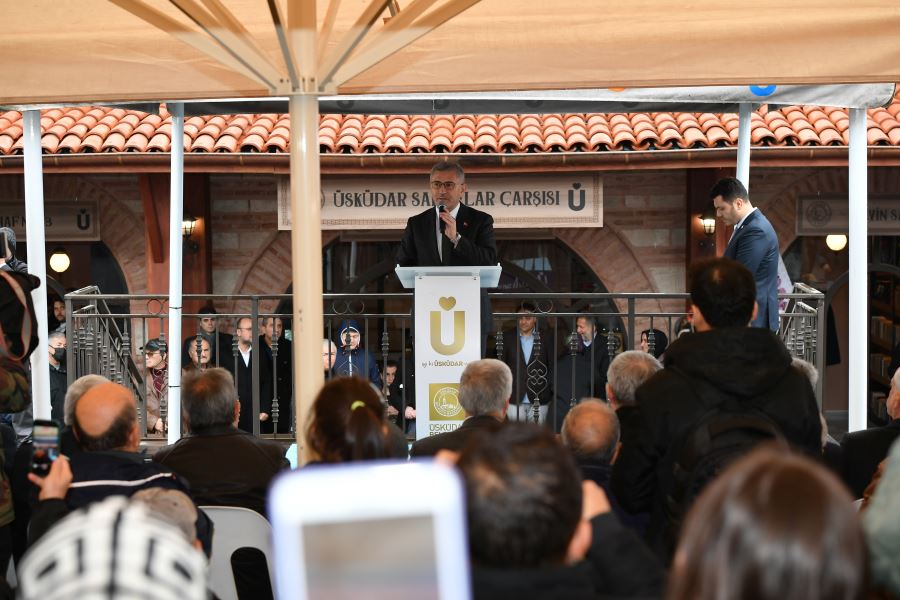 Açılışta konuşan Üsküdar Belediye Başkanı Hilmi Türkmen Üsküdar’ın bir kültür şehri olduğunu söyledi: ‘’Bildiğiniz gibi Eylül ayında hemen karşımızdaki Mimar Sinan Çarşısını, geçtiğimiz günlerde bu çarşının içinde yer alan Üsküdar Antikacılar Çarşısı’nı açmıştık. Bunlar gerçekleşirken de Mimar Sinan’ın inşa ettiği bu eski çarşımızın restorasyonu devam ediyordu. Şimdi de bir düzenlemeyle bu çarşının içinde yeniden düzenlediğimiz Üsküdar Sahaflar Çarşısı’nı açıyoruz. İstanbul’da sahaflık mesleği, sahaf dükkânları denince akla gelen semtler var. Üsküdar da bunlardan biri. Biz de bütün sahafları bir yere toplamak, kitap etrafında bir sinerji, bir topluluk doğsun istedik. Sahaflarımız kitapların da ruhuna, fiziksel yapısına uygun mekânlarda olsunlar; vatandaşlar da bu mekânlara kolay ulaşsınlar istedik. Hepimizin iradesi ortak ve bu yöndeydi. Ayrıca üst katı da Sahaflar Kahvesi oldu. Karşıdaki yeni çarşı ile birlikte Üsküdar’a yeni bir hareketlilik gelecek. Zaten capcanlı olan şehrimiz biraz daha renklenecek.’’